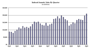 Sheryl Moore, CEO of both Wink, Inc. and Moore Market Intelligence commented, “It was a record-setting quarter for indexed annuity sales! In fact, 2022 will be a record year for indexed annuities as well!”