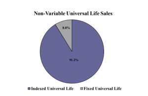 Items of interest in the fixed UL market included Nationwide retaining its #1 ranking in fixed universal life sales, with a 18.4% market share; Prudential, Pacific Life Companies, John Hancock, and Thrivent Financial completed the top five, respectively.