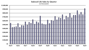 Items of interest in the indexed life market included National Life Group retaining its #1 ranking in indexed life sales, with a 15.3% market share; Pacific Life Companies, Transamerica, John Hancock, and Nationwide rounded out the top five, respectively.