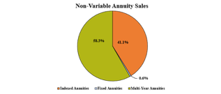 Indexed annuity sales for the second quarter were $32.0 billion; sales were up 18.6% when compared to the previous quarter, and down 0.1% when compared with the same period last year. Indexed annuities have a floor of no less than zero percent and limited excess interest that is determined by the performance of an external index, such as Standard and Poor’s 500 ® .