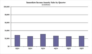 Total second quarter income annuity sales were $3.3 billion; sales were up 4.6% when compared to the previous quarter and down 1.3% when compared to the same period last year. Income annuities include immediate income annuity (SPIA) and deferred income annuity (DIA) product lines.