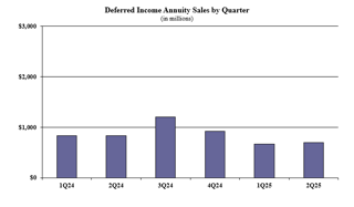 Deferred income annuity (DIA) sales in the second quarter were $701.3 million; sales were up 4.3% compared to the previous quarter and down 15.5% as compared to the same period last year.