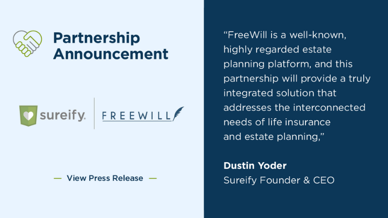SUREIFY PARTNERS WITH FREEWILL TO BROADEN ACCESS TO ESTATE PLANNING PRODUCTS FOR CLIENTS OF TOP LIFE INSURANCE CARRIERS